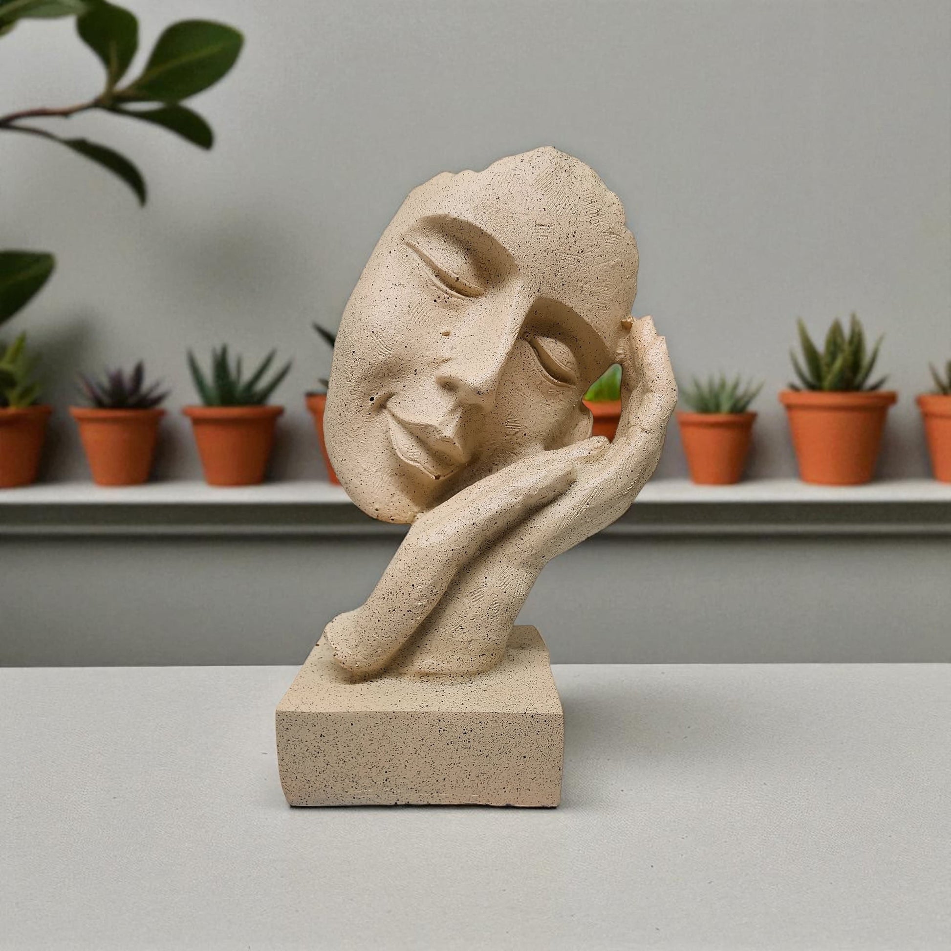 Introduce calm sophistication to your space with this resting face sculpture, artfully depicting a serene expression laid upon a hand. Its minimalist form and natural stone-like texture bring a grounded yet artistic presence to any setting. Made of durable polyresin and finished in a warm beige tone, this piece is perfect for those who appreciate emotional storytelling in their decor. Great for modern homes, quiet workspaces, or mindfulness corners. When art meets stillness - a sculpture that speaks without words.